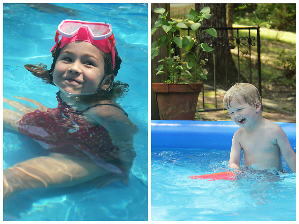 Before Saturday James was really nervous about the pool. He wasn't sure what to make of so much water. Earlier in the week he sat with Big Daddy on the float and got his feet wet, so I got in with him and let him sit with me to start out the morning. When Big Daddy got in the pool I sat him down to walk to Big Daddy's float, and once he realized he could stand and walk around, it was all over. He was so proud of himself. "I swim! I swim!"